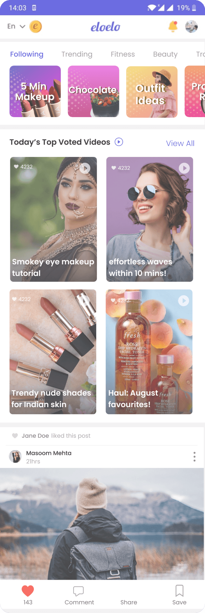 Worked at eloelo, a 0 to 1 Startup as the sole designer for over a year, which gave me quite a lot of experience to be quick on my feet.