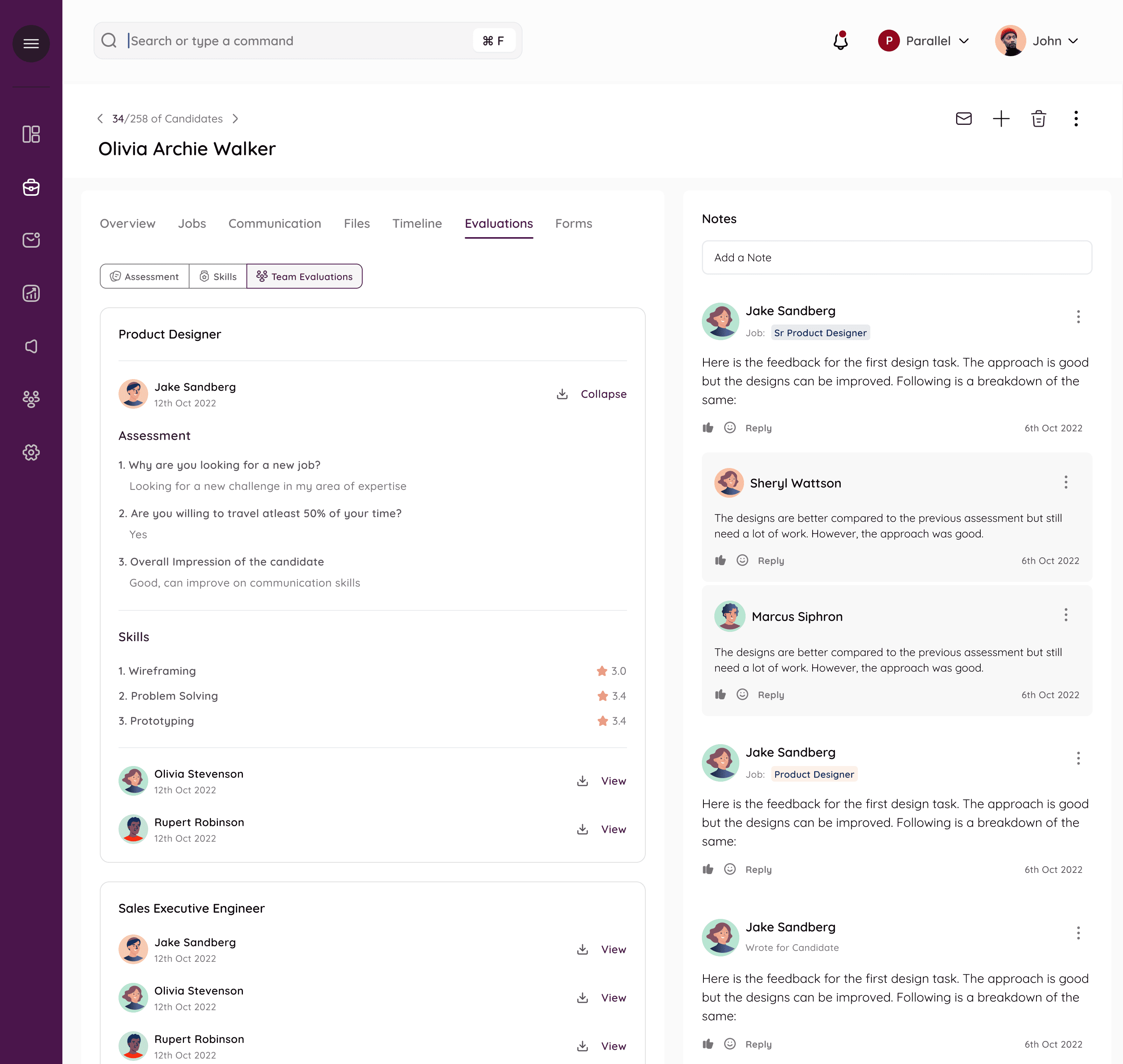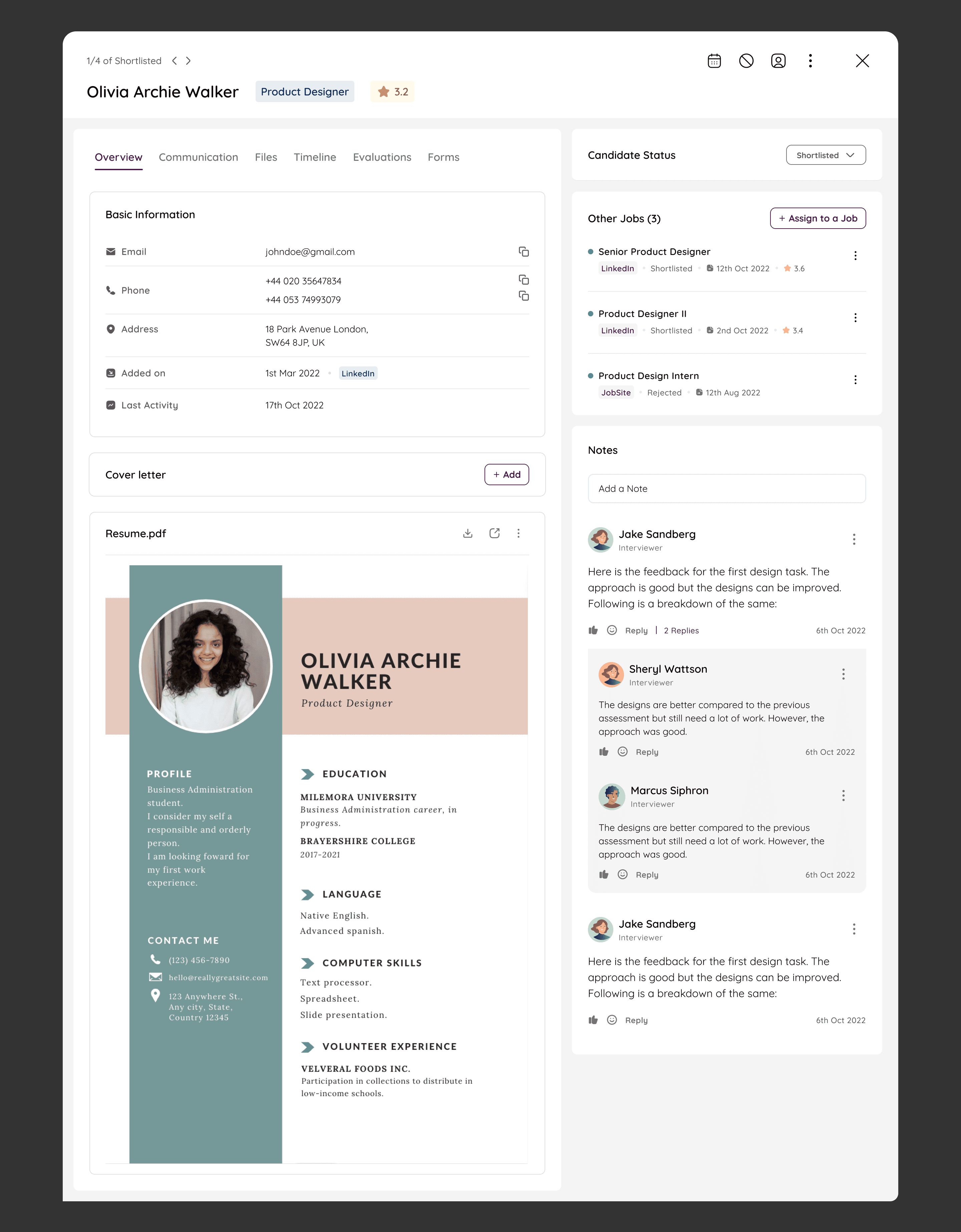 Other tabs - such as evaluations, where one interviewer can enter their assessments in the form or ratings ot comments and the rest of the team can also access them.